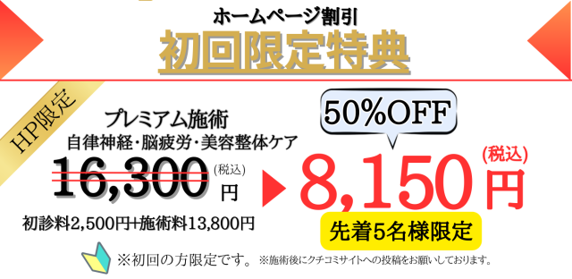 プレミアム施術(自律神経×美容整体)初回100分を50%OFFの8,150円