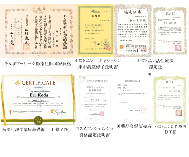 専門的な知識と手技療法を取得しております。安心してお任せください