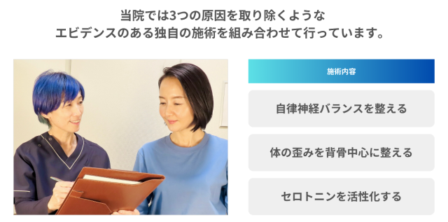 当院では、3つの原因を取り除く次のような独自の施術を行っています。